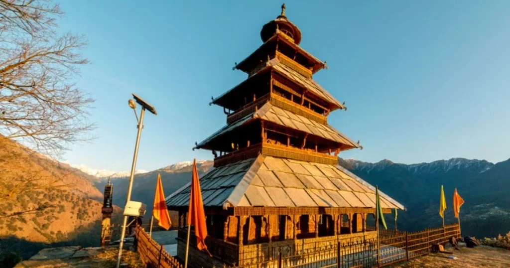 Surrounded by cedar forests, the ancient Hadimba Temple (built in 1553) is dedicated to Goddess Hadimba, the wife of Bhima. Its wooden architecture and serene atmosphere make it a must-visit.